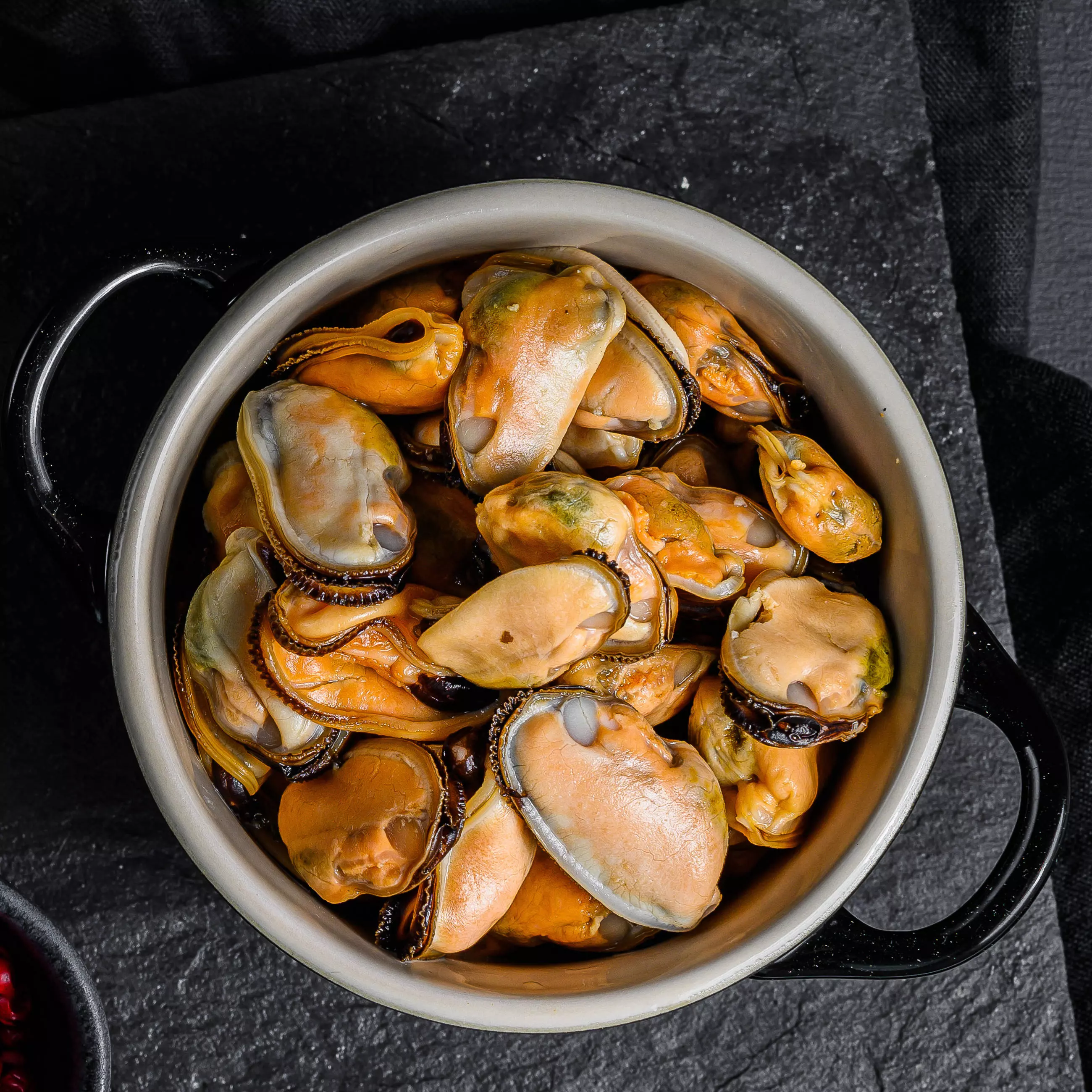 Mejillones al natural salteados en aceite con ajo molido, perejil y un toque de pimentón: un entrante marino delicioso listo en 10 minutos.